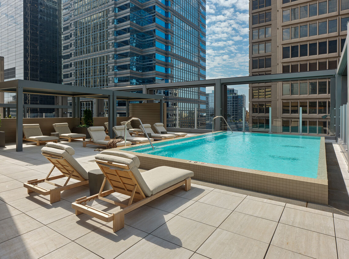 Clemens transformed 1701 Market Street, a 500,000 SF, 18-story, 1950’s office building, into a premier 299-unit residential tower. This adaptive reuse project preserved elements of the original limestone façade while introducing larger operable windows, screening at the podium level, vertical façade columns, and a rooftop sky frame. Designed for wellness, the project features premium amenities such as a saltwater pool, club room, fitness center, sauna, golf simulator, cold plunge, pickleball courts, and more—while capitalizing on rare direct access to the Concourse. Clemens’ expertise in complex urban renovations redefines this Market East flagship and sets a new standard for conversions.