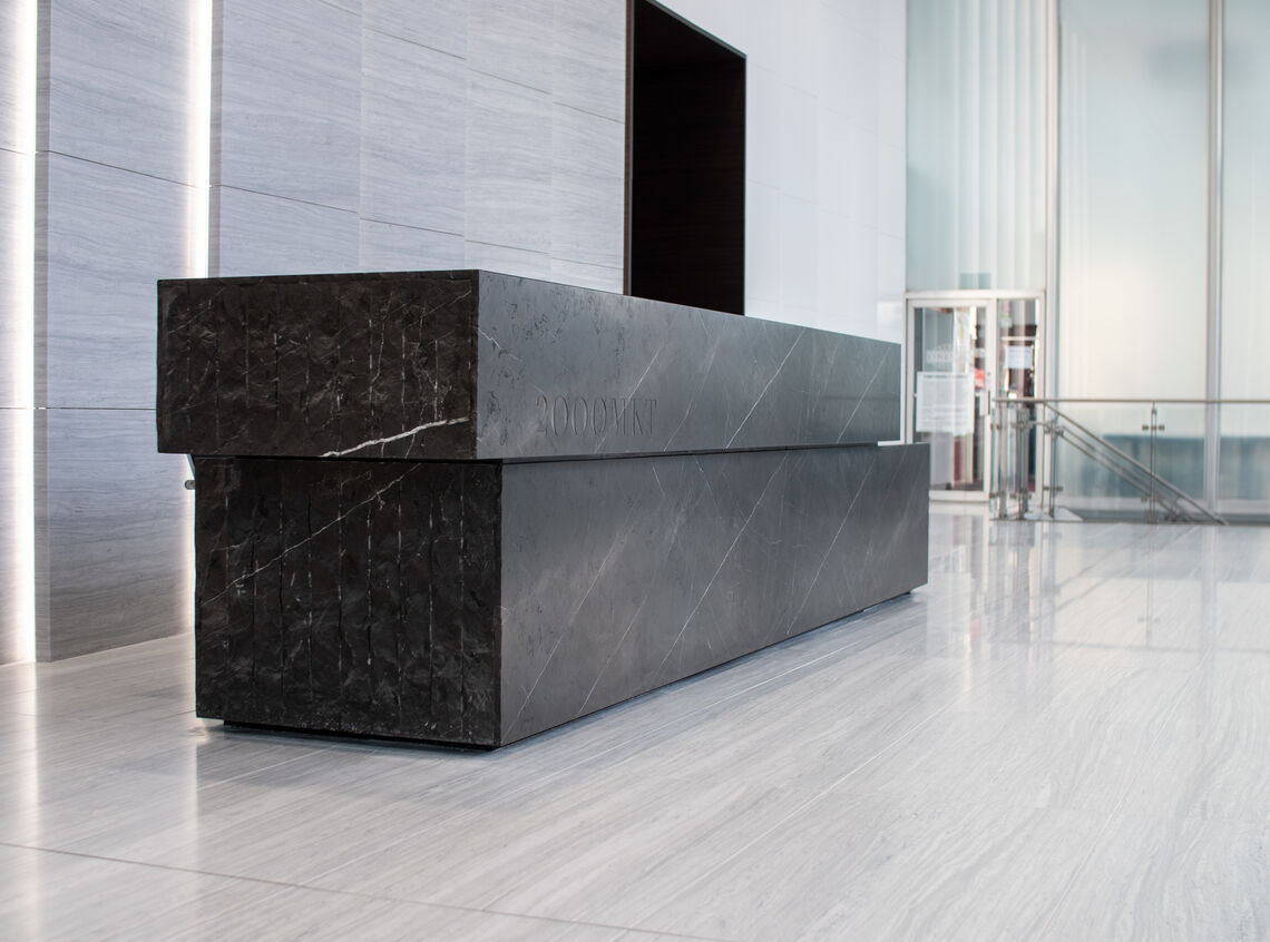 Clemens Construction completed a high-end renovation of the 2000 Market Street lobby in Center City Philadelphia. The refreshed double-height space now features an illuminated wall of Nestos marble, sleek elevator banks, a serene seating area, and a striking chandelier of suspended glass spheres. Despite a two-month pandemic-related delay, the team mobilized quickly and delivered the project ahead of schedule. Clemens coordinated closely with building management to maintain safe access for tenants, shifting pedestrian flow to the rear of the building and reserving elevators during business hours. Night work, including self-leveling concrete and tile installation, ensured uninterrupted operations.
