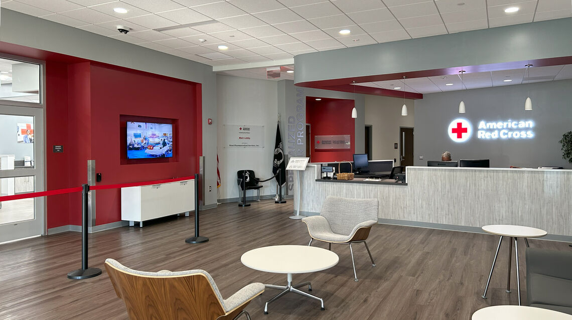 The project’s complexity stems from the need to complete major infrastructure and interior upgrades within a fully active, 24/7 facility. Clemens implemented a carefully phased construction strategy to relocate the donation center and sequentially build new training and conference rooms, administrative and office spaces, restrooms, breakrooms, and other shared-use areas—without disrupting ongoing life-saving work.