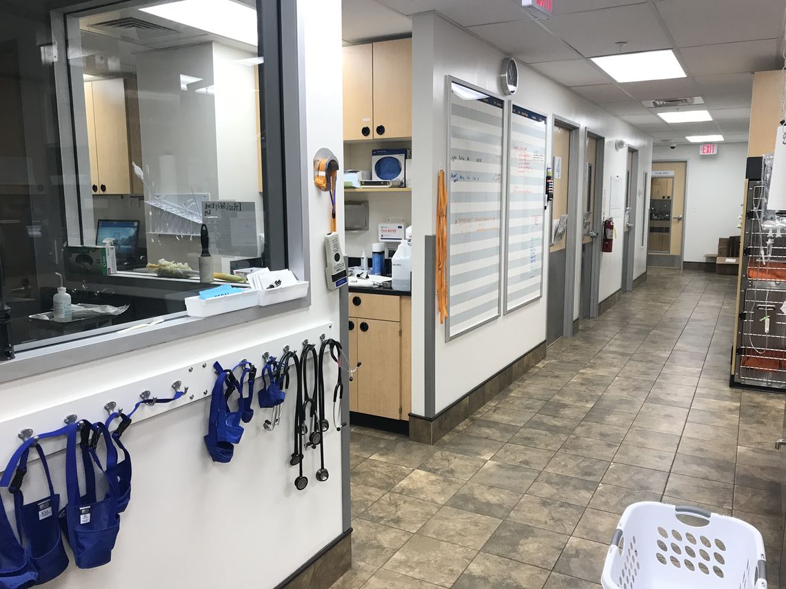 Fit-out of new animal hospital within a Center City PetSmart location. Space includes state-of-the-art exam rooms, operating rooms and laboratory with full x-ray capability and medical gas connections. Concrete polished floors, colored concrete, stainless steel column wraps, suspended ceiling, floor tile, millwork and full electrical service/panels. 16-week schedule.
