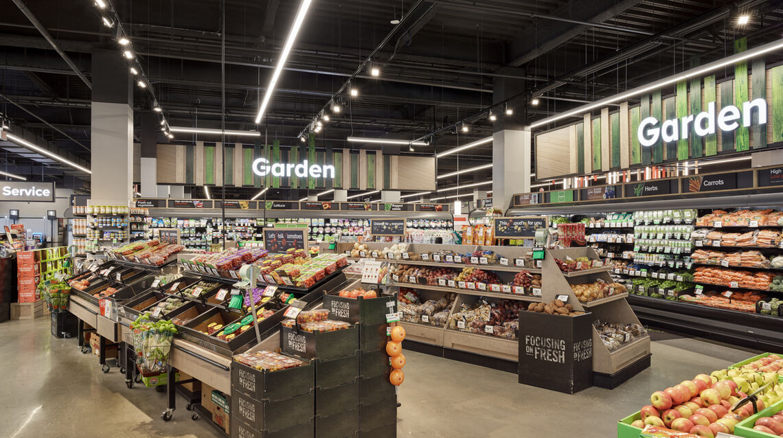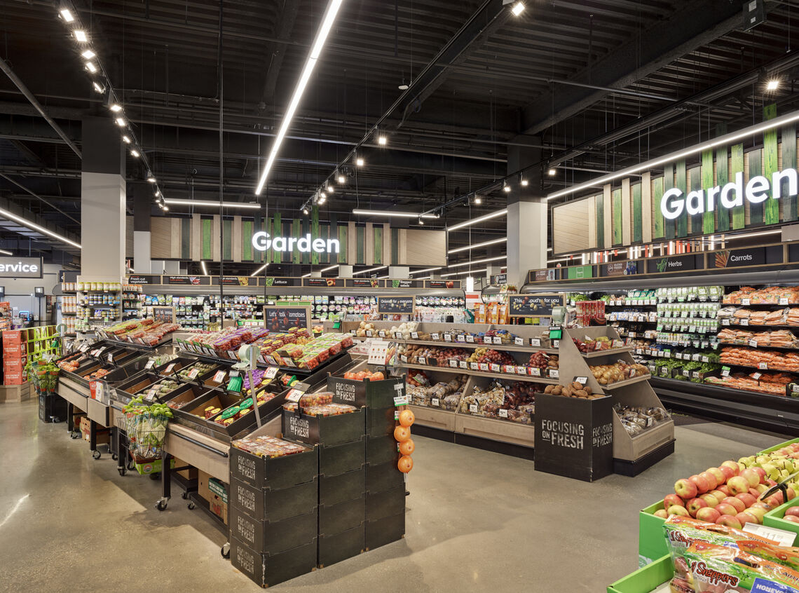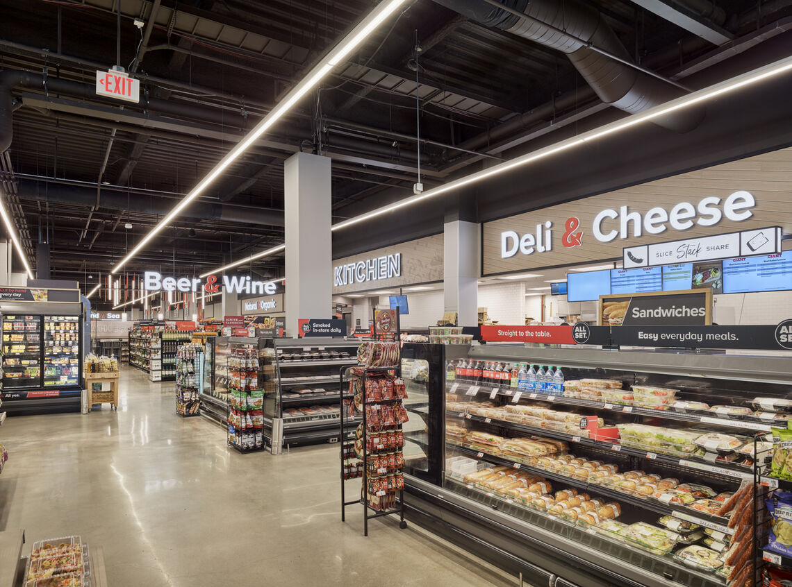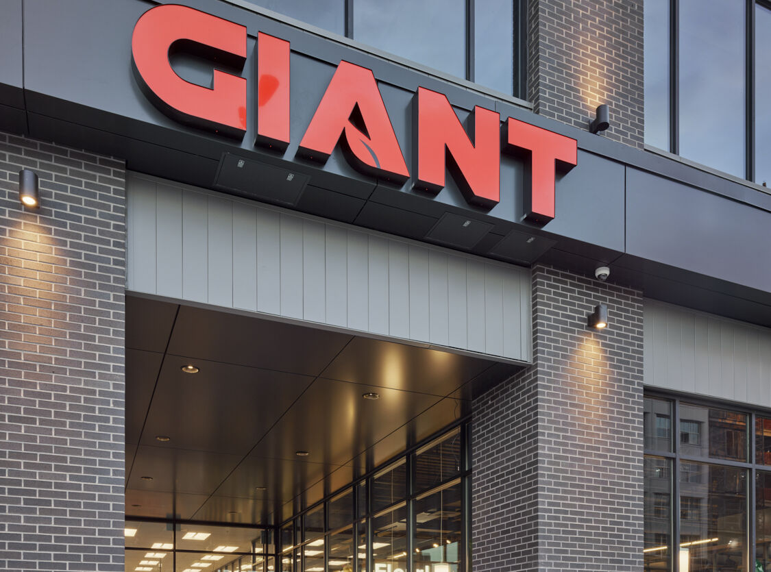 The 50,700 sf Giant grocery store features concrete polished floors, natural wood tones, high ceilings, wide aisles and exposed mechanicals. Inside the store there is a Starbucks, sushi counter, and a beer and wine selection with slushie options. The store features a mix of gourmet and basic goods customized to appeal to Philadelphia consumers with a shelf featuring hoagie condiments, and a pasta, cheese and olive oil display curated by Italian Market favorite Claudio's. Customers can park in the underground parking garage and enter the store via escalator or elevator.
