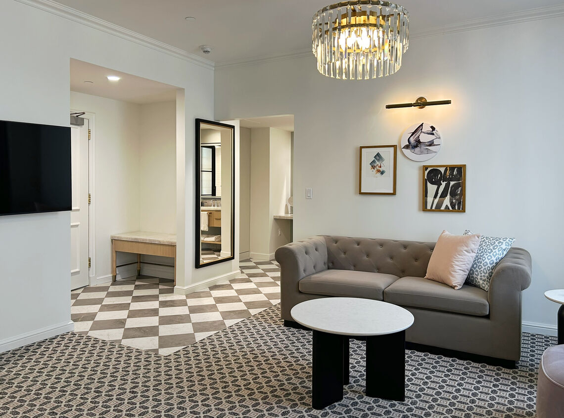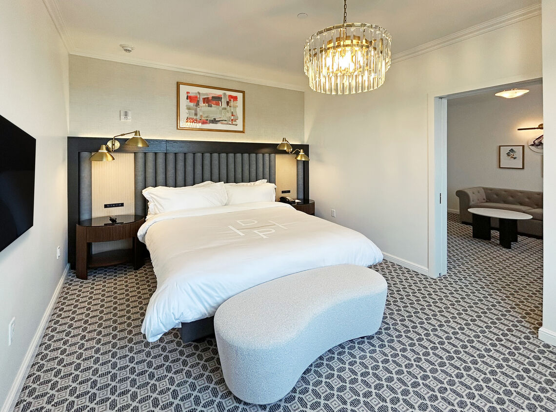 Clemens Construction renovated 136 guestrooms at the historic Hotel du Pont in Wilmington, DE, enhancing guest comfort while preserving the property’s timeless elegance. The project included replacing 136 in-suite fan coil units to provide modern climate control and improved energy efficiency, along with light finish upgrades to guestrooms on floors 3, 4, 5, 8, 9, and 11. A major highlight was the complete gut and remodel of the 12th-floor luxury suites, transforming them into refined, contemporary spaces that honor the hotel’s legacy of sophistication. The renovation scope included MEP modifications and new finishes such as carpet, tile, wall coverings, paint, drapery, casework, light fixtures, plumbing fixtures, furniture, and soft goods.