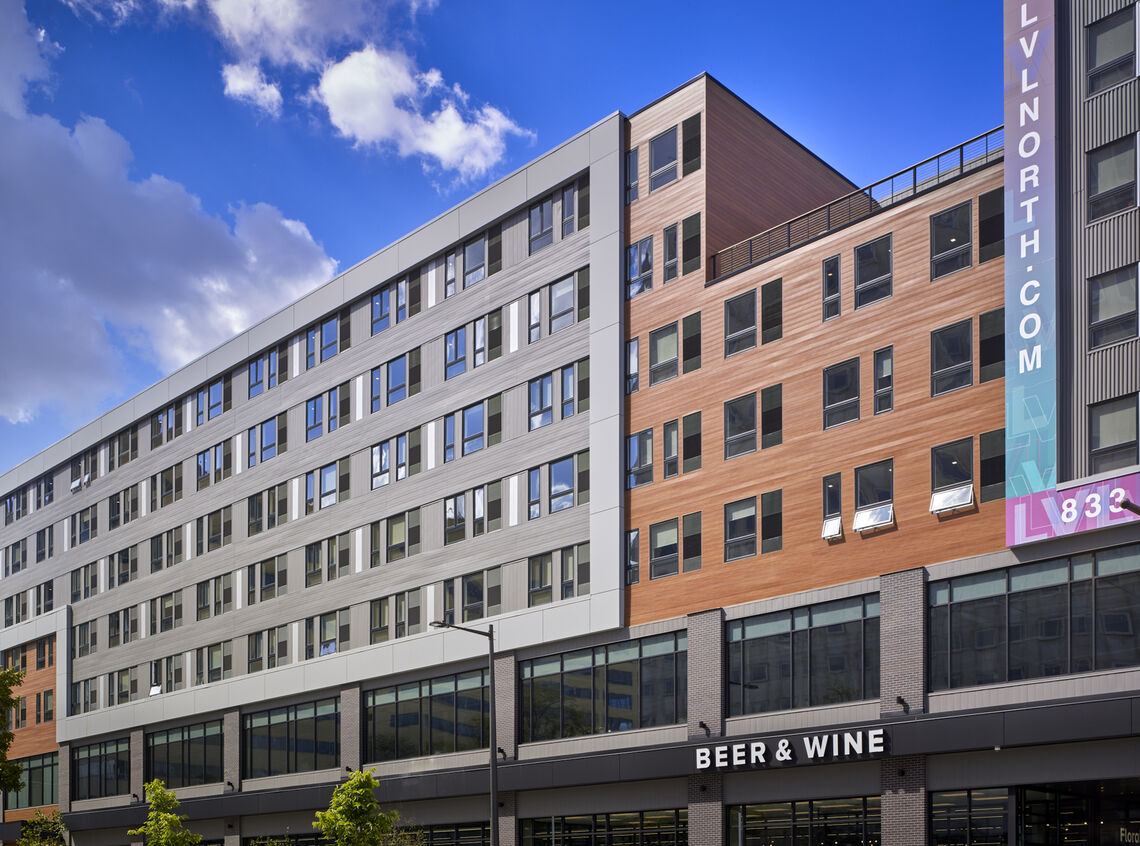 LVL North is a transformative mixed-use development located at Broad and Spring Garden Streets in Philadelphia, combining residential, retail, and commercial space into a vibrant urban hub. The seven-story, 530,000-square-foot building features five floors of modular residential units set atop two concrete and steel podium levels, with two additional levels of underground parking. The project includes 410 modern apartments, a 50,000-square-foot GIANT grocery store, and 60,000 square feet of additional retail and office space. Residents enjoy an extensive range of amenities, including a fitness center, bi-level outdoor terraces, a clubroom, flexible meeting spaces, zoom rooms, a rooftop deck, a dog run, and more — all designed to promote community engagement and a high-quality living experience.