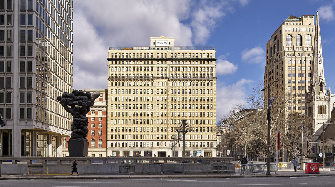 One City is located on one of the busiest downtown intersections with constant, heavy pedestrian and car traffic, one block from City Hall which created logistical challenges with loading and unloading the building. Further, the first seven months of construction took place while the building was partially occupied.