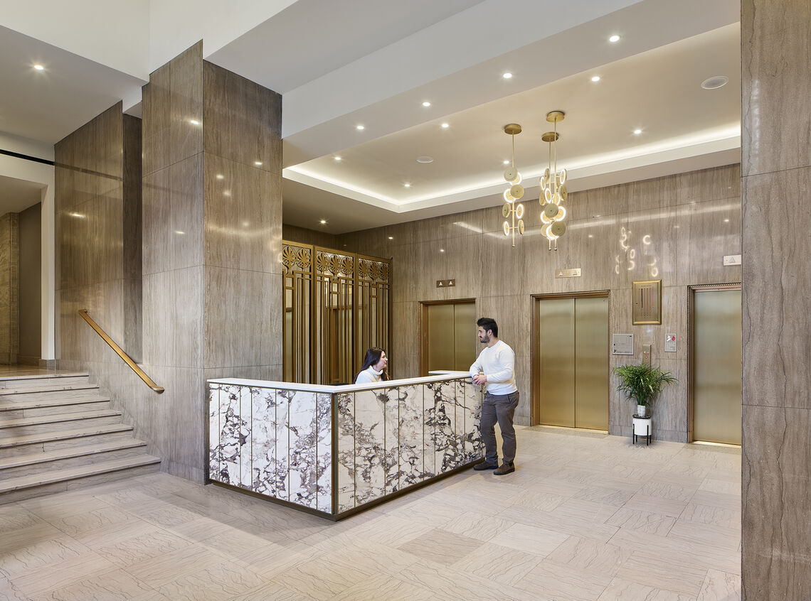 The project included masonry restoration of the original decorative façade, full demolition to the original structure on of all floors, installation of all new partitions, bathrooms, kitchens, plumbing, HVAC, and mechanical systems.