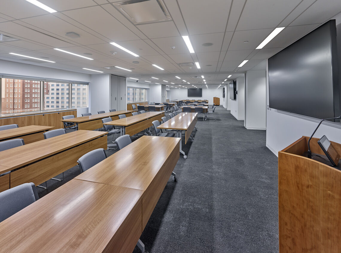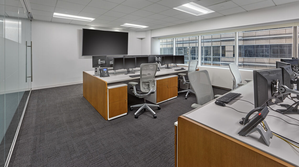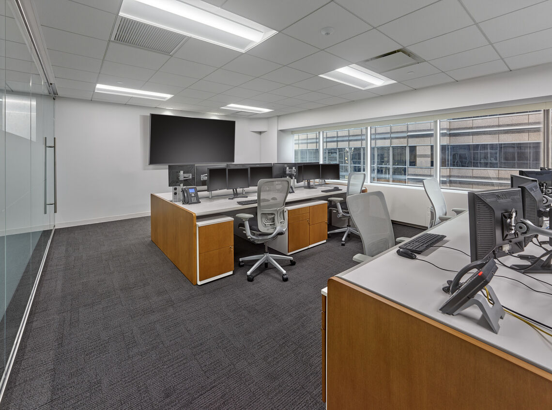 Interior fit-out and restack of seven floors. The multi-phased project included select interior demolition as well as new interior construction of pantries, bathrooms and service centers; full carpet and tile replacement; ceiling tile and lighting; MEP; and furniture systems. All work took place within an occupied office environment so special attention was paid to safety and environmental hazards.