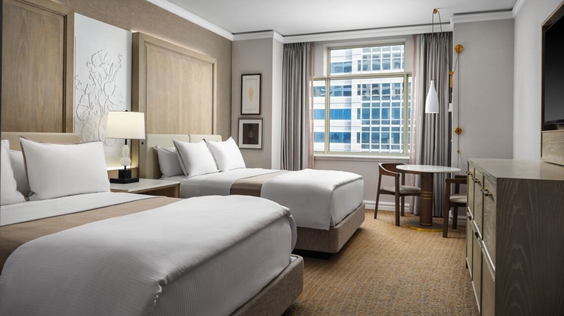 Clemens renovated 294 guest rooms and accompanying corridors, spread over 11 floors. The scope included 103 tub to shower conversions, full renovation of two suites, updated flooring, wallcovering, painting, electrical improvements, new FF&E, tile and plumbing modifications. Clemens also renovated the lobby bathrooms. All work was completed within an 20-week schedule while the hotel and banquet services remained in operation. The project required the receiving, storage, delivery and logistical coordination of all FF&E supplied by owner for installation.