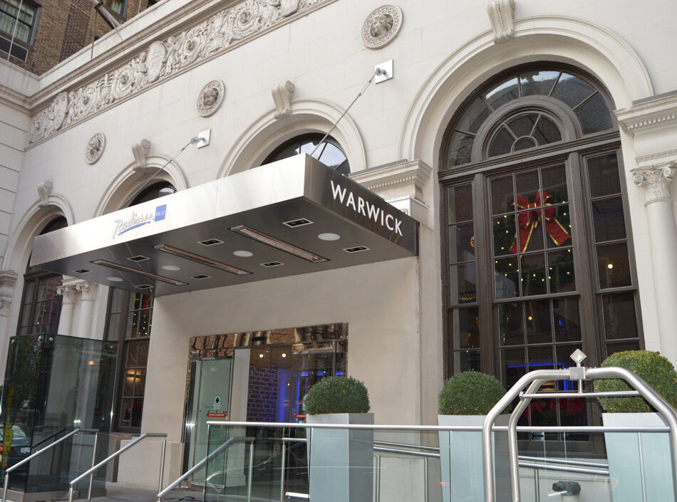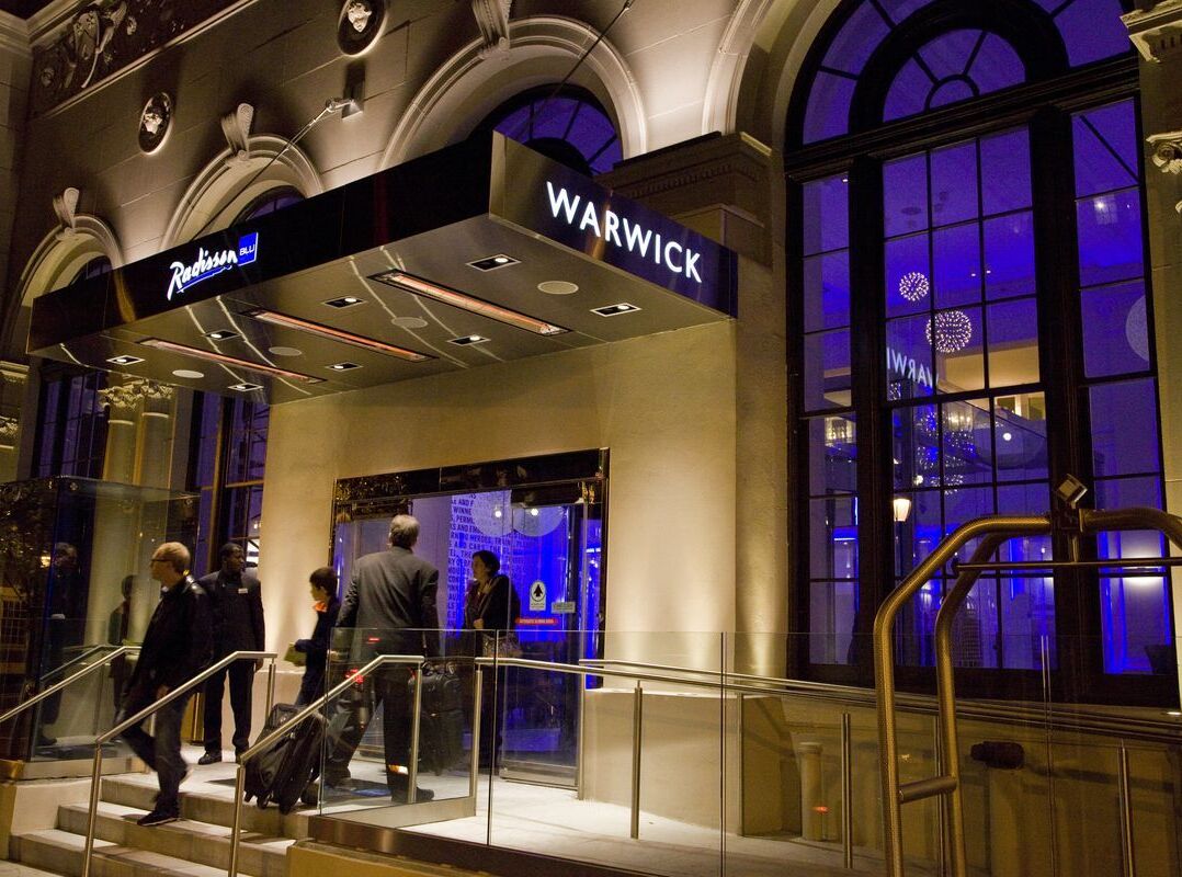 Renovation of the historic 1926 Warwick Hotel, listed on the National Register of Historic Places, was completed over five phases while the hotel remained operational. Renovations included restoration/replacement of all hotel windows, both aluminum and wood-frame. The lobby renovations comprised replacement and installation of a new main entrance complete with canopy and custom lighting. Further, a new automatic revolving door was installed at the main entrance. The project also included the complete renovation of two hotel kitchens including the replacement of all food service equipment including upgrade of mechanical plumbing and electrical infrastructure; Critical that hotel kitchen remained operational during renovations.