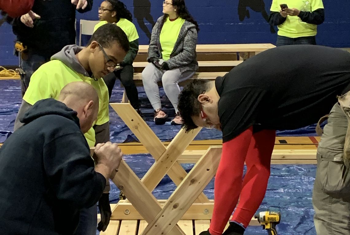 Students and mentors from the ACE Mentor Program, along with volunteers and professionals from Eastern Atlantic States Regional Council of Carpenters, Woodland Building Supply and City Councilwoman Cherelle Parker’s Office built picnic tables and benches that will enhance the quality of life for users of the Houseman Playground Recreation Center. The new seating will become part of the main entrance and pool area and will help increase community interaction. Further, it will allow for better supervision of the children using the playground.